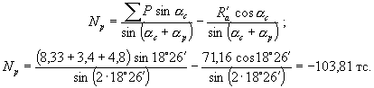N0 - равнодействующая усилий предварительного напряжения арматуры, полученная в разд. 4 настоящего расчета с учетом всех потерь;