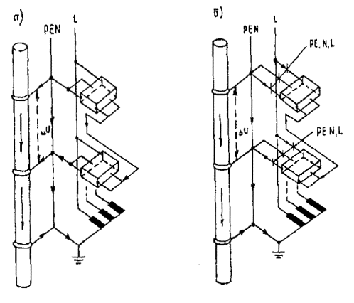 одной из параллельных цепей PEN-проводника. Такое положение наблюдается во всех