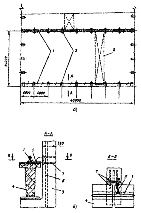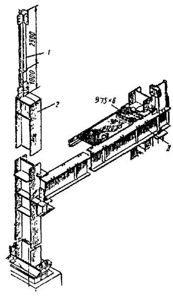 (монтажные) стального каркаса 1 - надопорная стойка; 2 - стальная колонна постоянного сечения; 3 - подкрановая балка