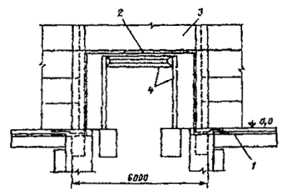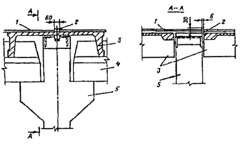 оголовок колонны 1 - подстропильная ферма; 2 - стропильная ферма; 3 - надопорная стойка; 4 - стальная колонна приварка закладных изделий к