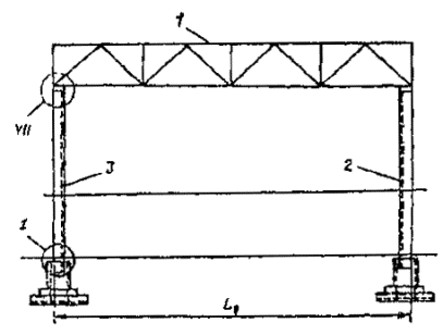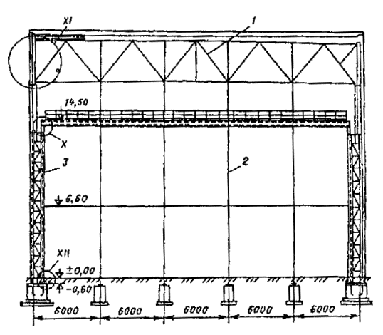 с металлическим каркасом 1 - ферма; 2 - колонна вспомогательная; 3 - основная колонна Непрерывность электрической