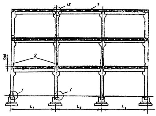 * Для первого и средних этажей. ** Для верхнего этажа. Примечание. Обозначение L0 - ширина пролета или модульный шаг колонны по поперечным координатным осям в многоэтажных зданиях с железобетонным каркасом; B0 - модульный шаг колонны по продольным координатным осям или шаг колонны; Н0 - модульная высота этажа. Таблица 3 Расположение дополнительных