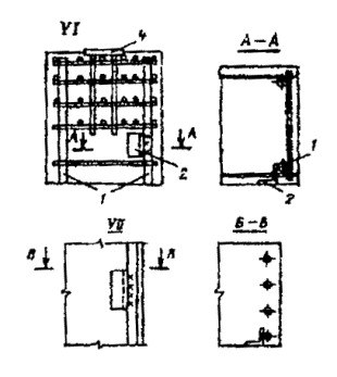 Примечание. Обозначения: 1 - вертикальная арматура; 2 - закладные (дополнительные) изделия для присоединения заземляющих проводников и создания единой электрической цепи; 3 - соединительный стержень; 4 - закладные изделия типовой колонны; 5 - соединительная перемычка; 6 - соединительный элемент. Таблица 4 Расположение дополнительных