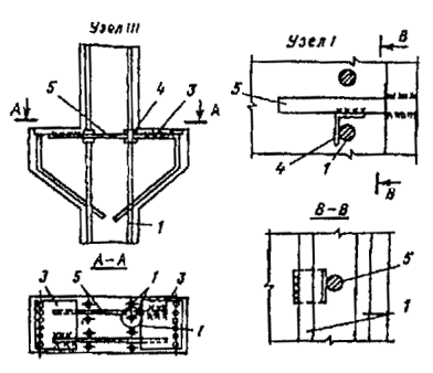 показаны соответственно на рис. 20-22. Как видно из рисунков, узлы крепятся либо сваркой,