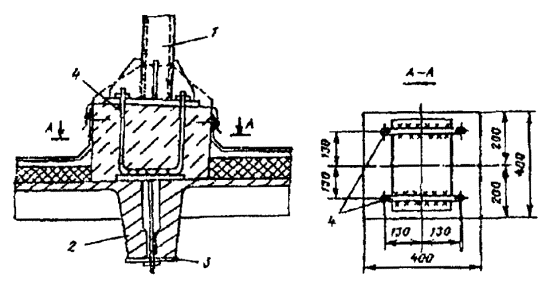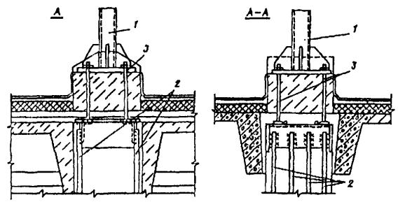 2 - арматура колонны, используемая в качестве токоотвода; 3 - анкерные болты