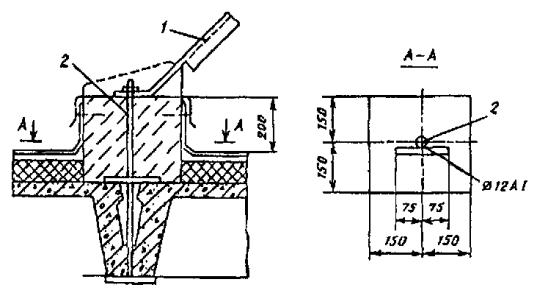Рис. 24. Крепление оттяжки 1 - оттяжка; 2 - анкерный болт