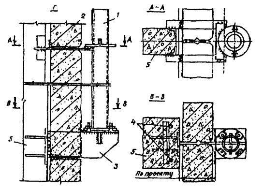 колонны не менее чем в двух местах. Расположение точек подсоединения