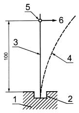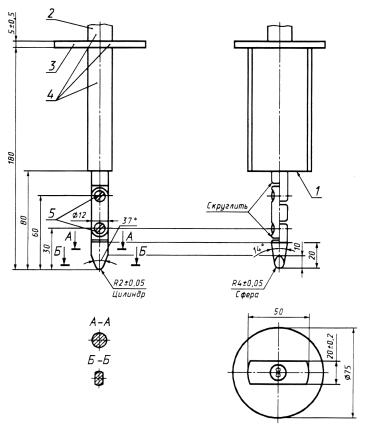 3. Измеряют расстояние между распорными лапками, которое должно соответствовать указанному на рисунке С.3 Затем резьбовые соединения узла крепления ослабляют и выключатель устанавливают в шаблон. Резьбовые соединения узла крепления затягивают крутящим моментом, указанным в таблице 3. К основанию выключателя при помощи специальных захватов (типа скобы или хомута) прикладывают силу, направленную вдоль оси приспособления, плавно увеличивая ее от нуля до (90 ± 5) Н со скоростью, позволяющей проводить визуальный контроль значения прикладываемой силы. После (60 ± 5) с воздействия силы ее плавно уменьшают до нуля. Резьбовые соединения узла крепления ослабляют и выключатель извлекают из шаблона. Затем резьбовые соединения узла крепления выключателя затягивают крутящим моментом, указанным в таблице 3, и проводят измерение расстояния между распорными лапками. Метод