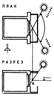 разрезе помещения определяют горизонтальные и вертикальные инсоляционные углы