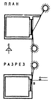 противолежащего здания по условному масштабу высот зданий на инсоляционном