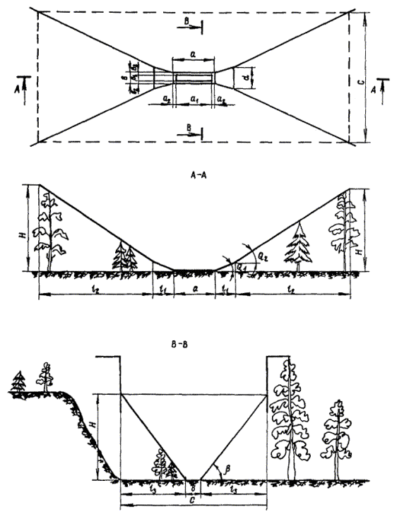 - территория с радиусом 0,5 высоты сооружения; при методе поворота - территория,
