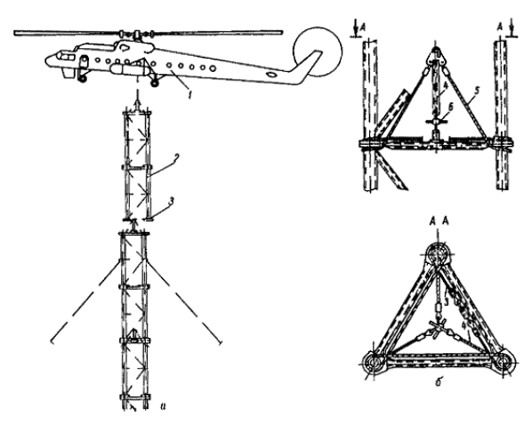 специфика вертолетного монтажа: разделение сооружения на монтажные блоки,