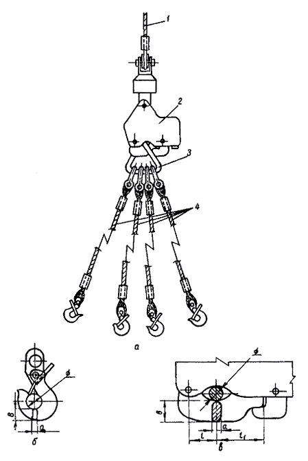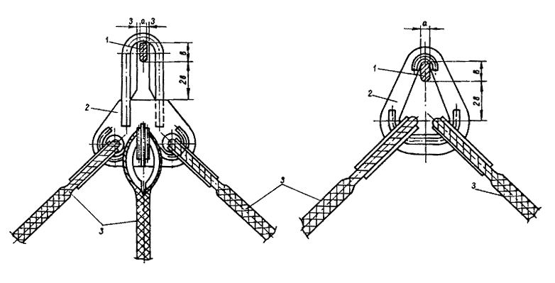 и звена под габариты вертолетных электрозамков и крюков: 1 - силовой рычаг электрозамка; 2 - траверса (звено); 3 - монтажные стропы 6.6. Крепление стропов или тросов внешней подвески к