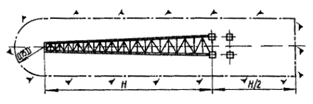 монтажа поворотом вокруг шарнира: D - диаметр несущего винта вертолета; Н - высота монтируемого сооружения 7.5. В опасную зону подлета входят