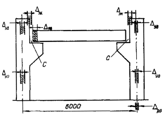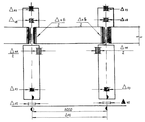 допуска на осевую разбивку оснований колонн определяют из следующего выражения: