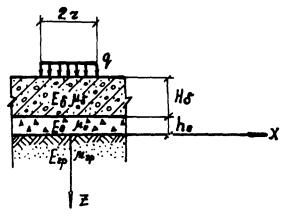 упругости, коэффициент Пуассона, толщина слоя; 3 - многослойное основание; Еобщ,