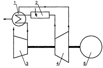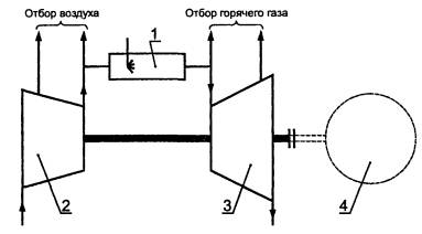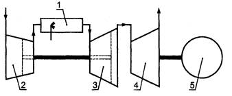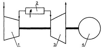 сгорания; 3 - турбина; 4 - нагрузка.