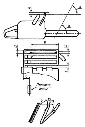 выступать не менее чем на 30 мм в сторону направляющей шины пильной цепи. Длина