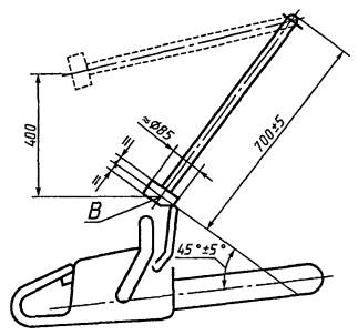 траектория движения молотка проходила через точку удара под углом 45° ± 5° к оси пильной шины. Это испытание проводят не