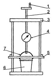 тара; 4 - неподвижный упор; 5 - серьга; 6 - датчик усилия;