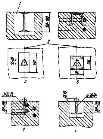 для съемных болтов, колодцами для болтов и закладными элементами для