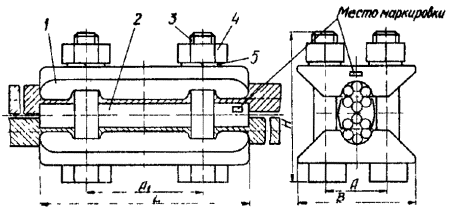 Рис. 1. Разъемные зажимы: А - для сращивания канатов, Б - для