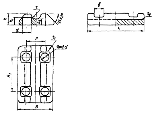 ширина ее меньше В (см. рис. 4) на 2 мм, а толщина меньше h (см. рис. 4) на 1 мм. Рис. 2. Разъемный зажим с профильным