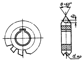 - матрица Рис. 6. Дисковая фреза: dз - глубина зуба; dпр - диаметр профиля зуба; q - угол заточки фрезы Рис. 7. Схема установки заготовки пуансона