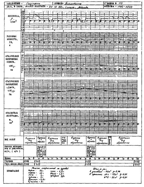 значения параметров бурового раствора (см. приложение 7). Вертикальные линии на бланке указывают