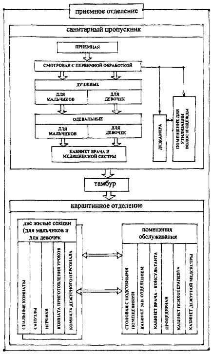 обособленно от жилых палат (для возможного наблюдения за воспитанниками).