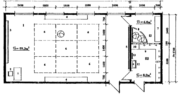 должна быть не менее 5 м. Пол снарядной должен быть в одном уровне с полом