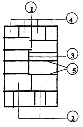 не пересекающие средней линии квартала и границ соседних участков. 1. Средняя линия квартала 2. Смежные участки 3. Внутриквартальная граница 4. Соседние участки 5. Боковая