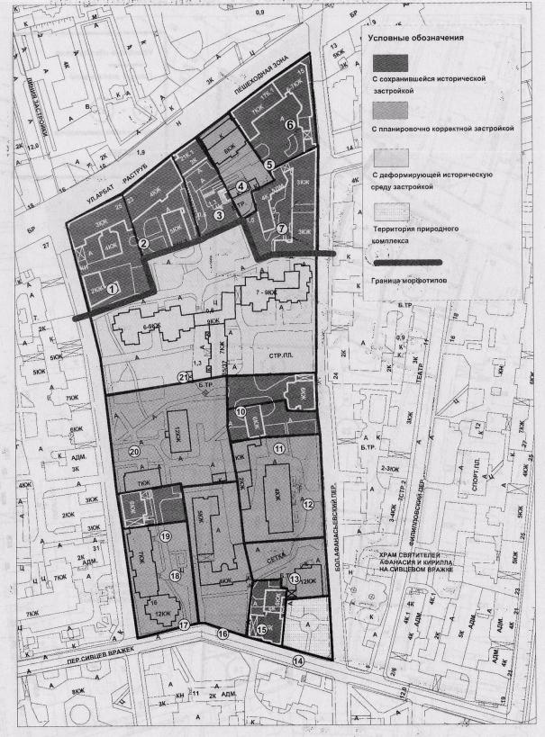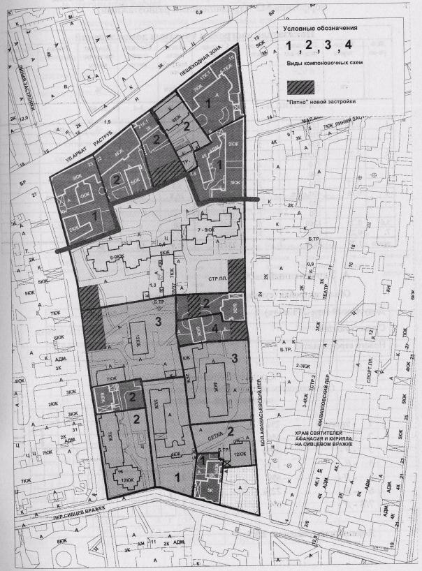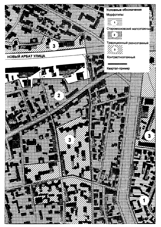 примере квартала, расположенного в районе Арбата, в морфотипах М-2 и М-3 КВАРТАЛ НА ФРАГМЕНТЕ СХЕМЫ РАСПОЛОЖЕНИЯ
