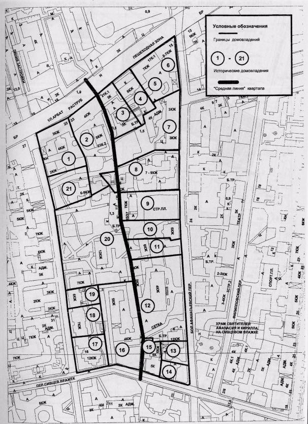 членения исторических структурно жестких кварталов на участки домовладения: - территория