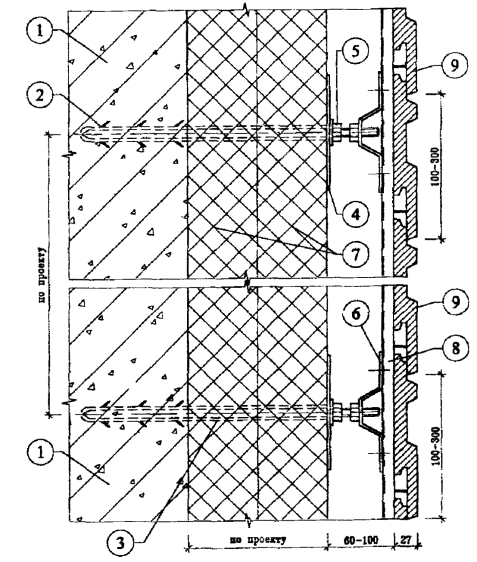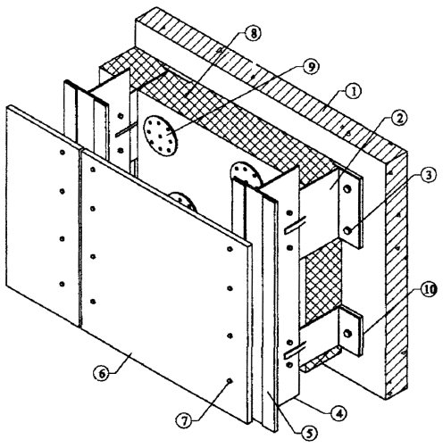 утеплителя и элементы несущего каркаса, посредством которого на стене, с