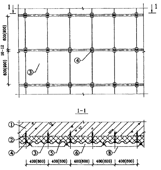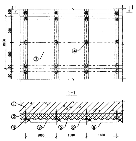 применением гофрированных листов, смонтированных "внахлест" 1. Основание. Рис. 12.5. Вертикальный разрез системы (узел) 1. Рамка из арматурных стержней. Рис. 12.6. Пространственный
