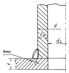 толщину стенки, полученная из условия приспособляемости. Поверочный