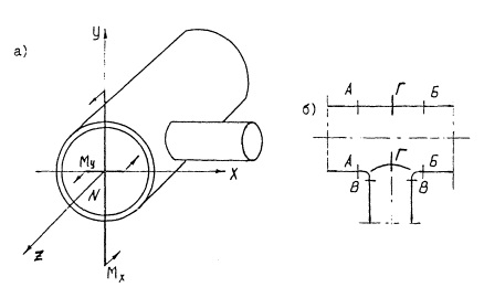 эксплуатации. Внутренние силовые факторы в расчетных сечениях трубопровода