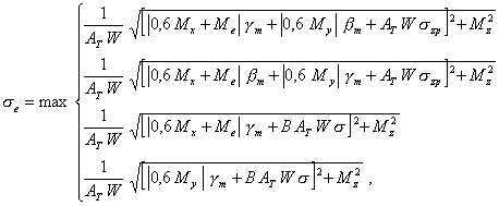 проводится по методу максимального эквивалентного напряжения. Если в последнем