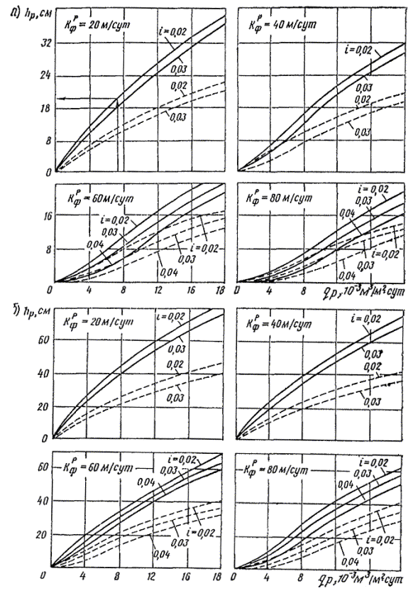 глубину фильтрационного потока hр = 20 см; по номограмме (см. рис. 14, а) для i =