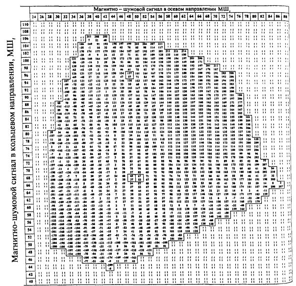 магнитно-шумового сигнала в осевом и кольцевом направлениях указан уровень