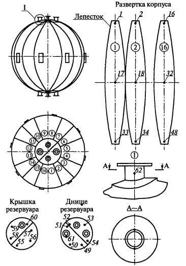 швы приварки лепестков оболочки друг к другу, а также к верхнему и нижнему