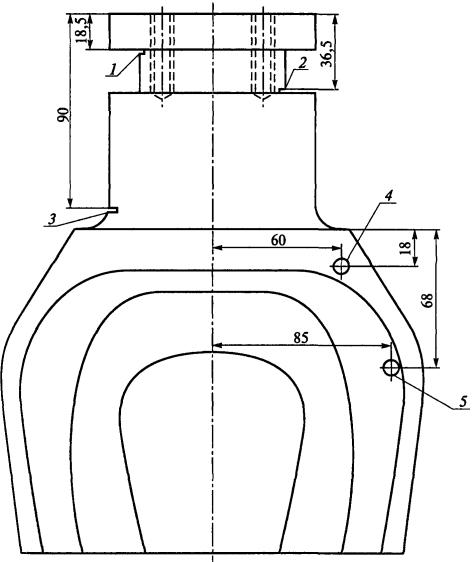 (запил, надрез) глубиной 2 мм и шириной £ 1,5 мм; 3, 4 - реперы (сверления) Æ6 мм; 5 - репер