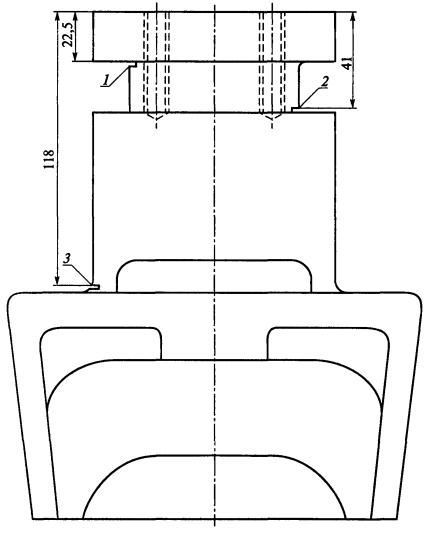 предприятия № 2 к лопатке ВГП типа ВОД-40М: 1, 2, 3 - реперы (запил, надрез) глубиной 2 мм и шириной £ 1,5 мм Черт. 8. Контрольный образец предприятия