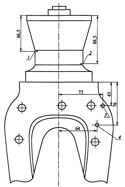 № 4 к лопатке ВГП типа ВОД-40: 1, 2 - реперы (запил,