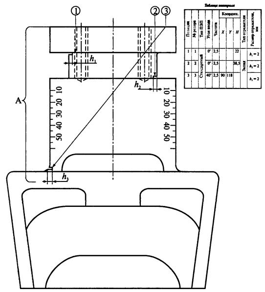 ближним отражателем служит репер 1, дальним - репер 4. 3.2.5.5. Настройка наклонного ПЭП проводится по реперу 3