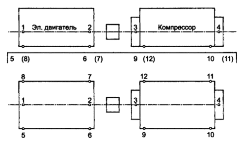 поршневого компрессора (для винтового компрессора - шестерен связи) проявляется