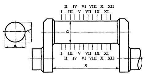 проводится толщинометрия; 1 - 7 - номера сечений, в которых проводится