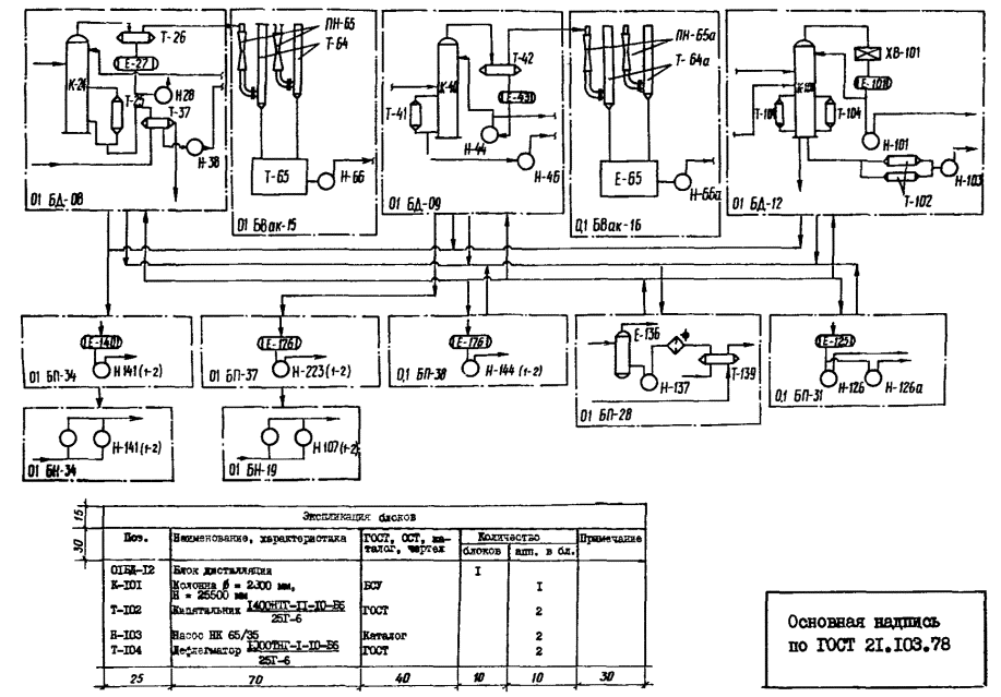 На схеме приводят экспликацию оборудования по блокам. 1.5.