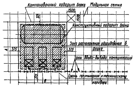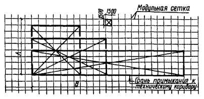 Компоновку осуществляют на опорной модульной сетке с ячейками размерами 1500´1500